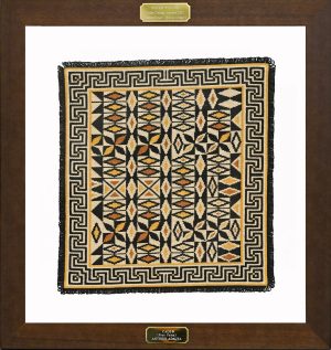 … é uma nova aplicação do ponto de Arraiolos. Usando linha e quadrilé manufacturei um bordado que, colocado entre dois vidros e moldura, exibe-se numa parede.